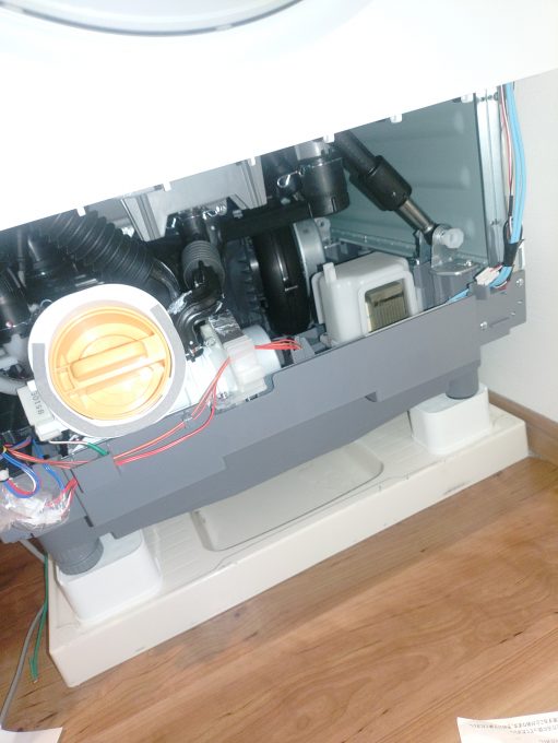 ドラム式洗濯機を動かして洗濯パンと排水の清掃をしていきます。