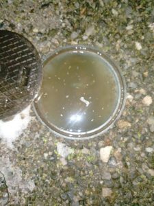 屋内と屋外を詳しく点検すると、排水マスが詰まっていました。