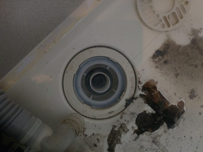 床下は大丈夫でしたが、ドラム式洗濯機から排水すると洗濯パンに汚水がオーバーフローします。