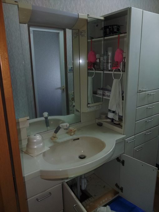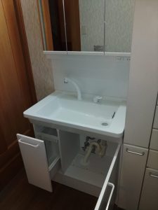 滋賀県愛荘町蚊野へ洗面化粧台交換でお伺いしました。