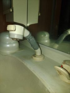 シャワーヘッドにはテープを巻いてあり、