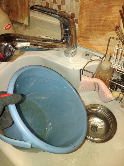 台所排水マスから溢れていました。