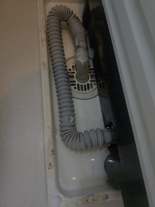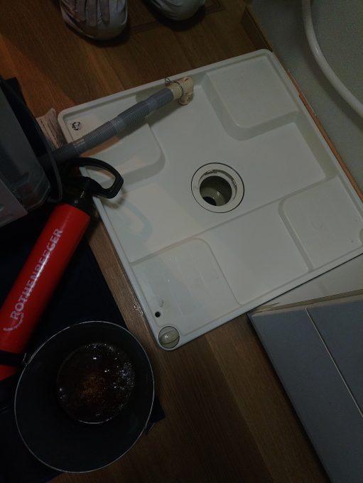 ドラム式洗濯機を移動させてトラップ分解し…