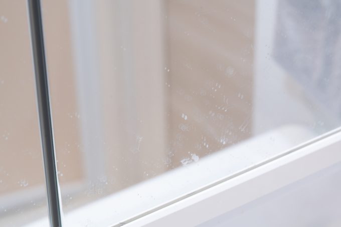 水道水に含まれるカルシウム・マグネシウムなどのミネラル成分が乾いて固まってしまうのが主な原因です。