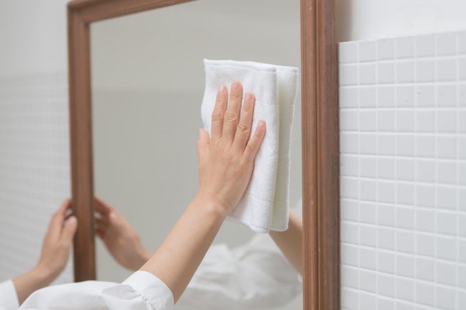 ただし、曇り止め加工された鏡をお使いの場合は、加工がはがれてしまう可能性がありますのでクエン酸やアルコール類の使用は避けるよう注意してください。